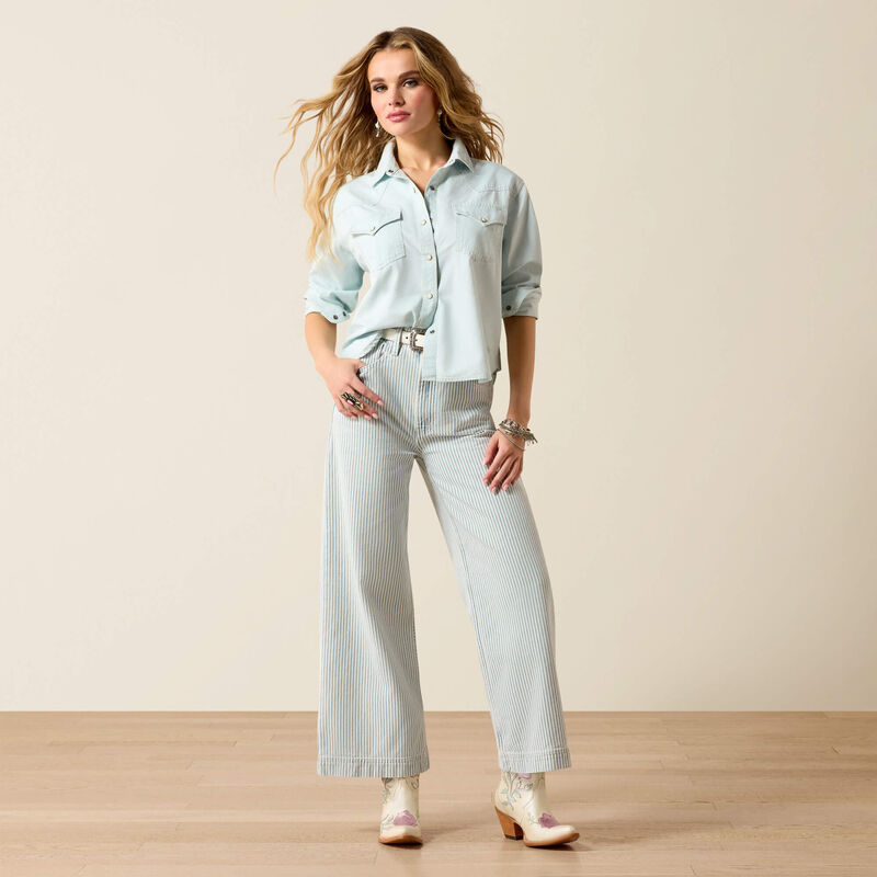 All the hallmarks of a classic Western shirt—snap closures, flap pockets, and a pointed yoke—but with an elevated feminine feel. Casually elegant, it’s a style designed to stand out.